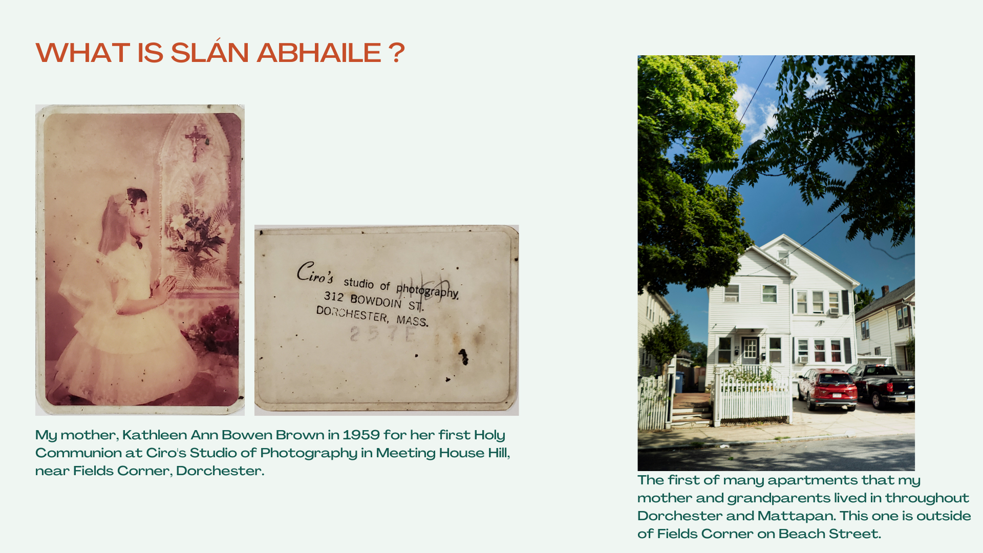 My mother, Kathleen Bowen Brown, grew up in Dorchester in the 1950s-70s. She faced a childhood of housing insecurity and economic hardship. Her struggle is alive and well in 2023. It is cyclical.